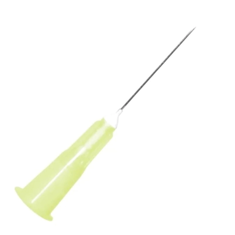 Agulha descartável estéril embalada unitariamente, acondicionadas em caixas secundárias com 100 unidades.