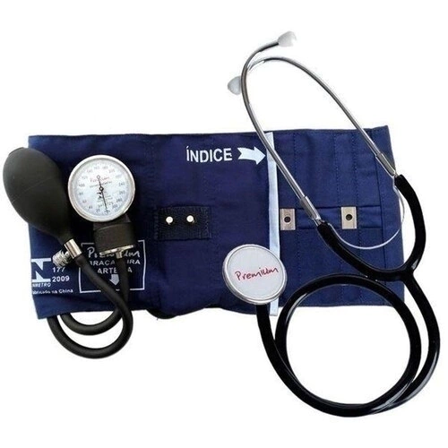 Cor: Esfigmomanômetro azul / Estetoscópio preto