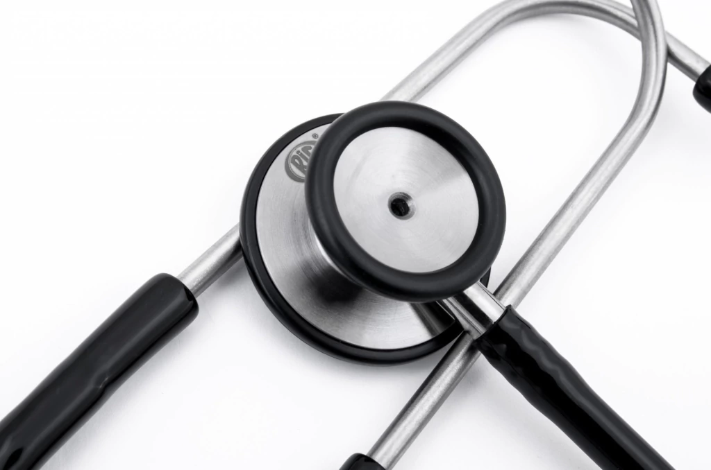 Estetoscópio Master Duplo Adulto em Aço Inox de alta sensibilidade com auscultador duplo para ausculta cardiológica e pulmonar de alta e baixa frequência. Ótima performance acústica e design avançado.