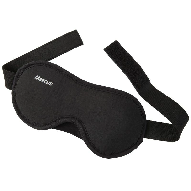 Possui formato anatômico. A parte interna, confeccionada em tecido e estofada em espuma, proporciona um toque macio, garantindo conforto para a região dos olhos. Possui faixa elástica com ajuste em fecho aderente, que firma a máscara sem causar pressão excessiva.