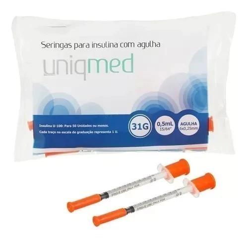 Seringa para insulina - 0,5ml - 6mm x 0,25mm (15/64" x 31G).