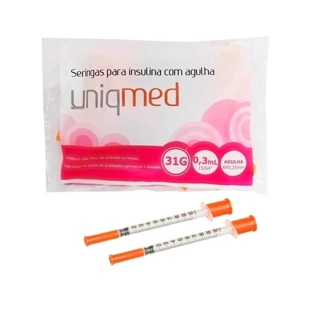 Seringas de insulina com agulha produto de finalidade médica, para administração de medicamentos como a insulina, toxina botulínica e outros.